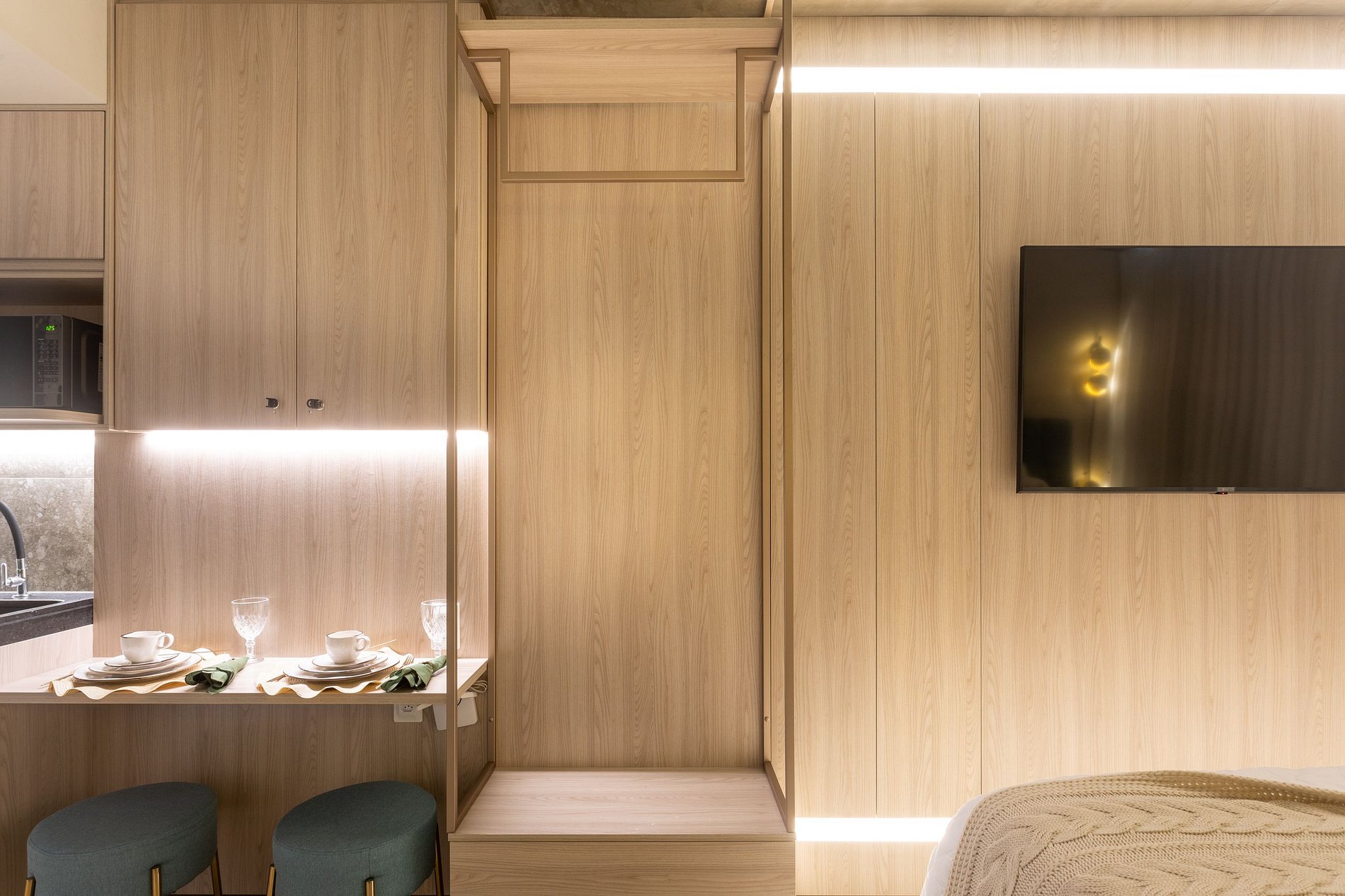 O flat possui um design moderno e funcional, com acabamentos de alta qualidade e uma atmosfera acolhedora. Com uma área de , cada centímetro deste espaço foi cuidadosamente planejado para oferecer o máximo de conforto e conveniência.