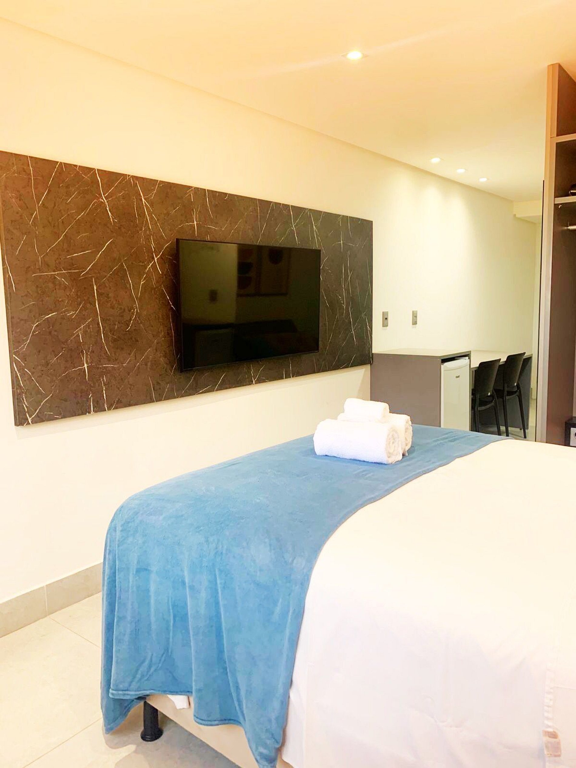 -Temos a limpeza diária (só pedir a recepção) porém a troca do enxoval só será feita mediante pedido ao nosso whatsapp em estadias com mais de 4 dias.